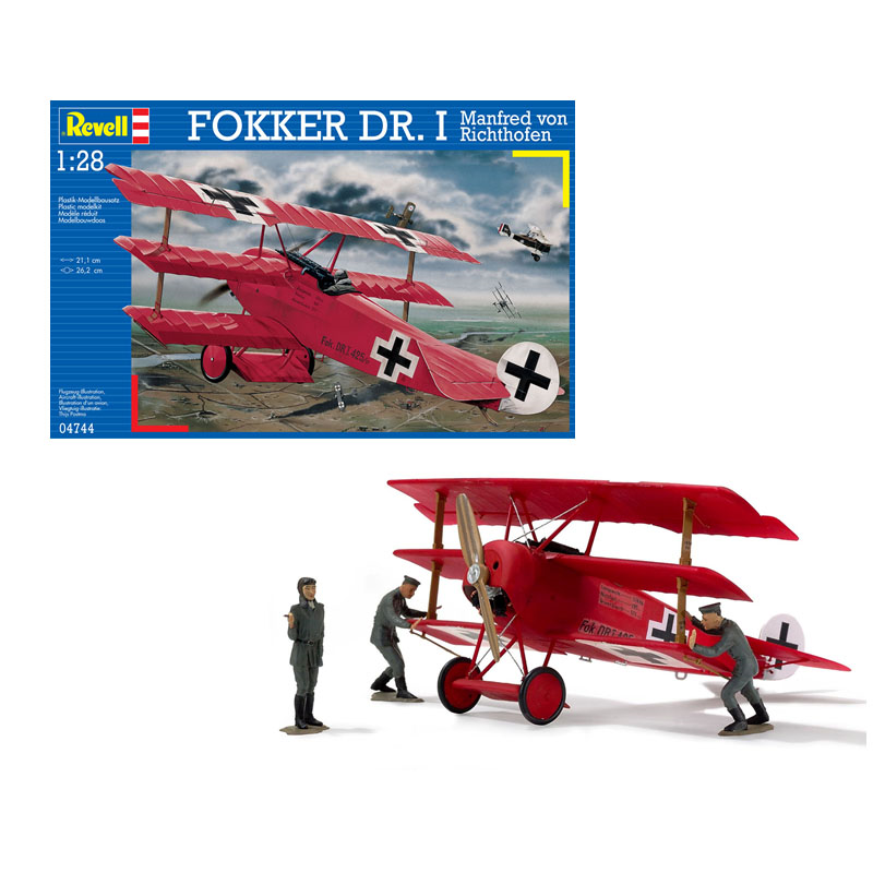 Le Fokker Dr.I est un avion de chasse de la Première Guerre mondiale construit par Anthony Fokker et utilisé par l'Allemagne en 1917 et 1918. Le plus connu fut celui du Baron Rouge. Ses trois ailes superposées permettent une portance adéquate tout en conservant une envergure limitée, ce qui assure à l'appareil une très bonne maniabilité. La maquette avion Revell reproduit ce modèle au 1/28, réf: 04744