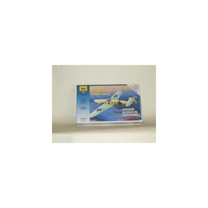 Le Messerschmitt Bf 109 est un chasseur monomoteur monoplace allemand conçu dans les années 1930 par l'ingénieur allemand Willy Messerschmitt en réponse à un appel d'offres du Reichsluftfahrtministerium pour la conception d'un chasseur moderne devant équiper la Luftwaffe naissante. Bien que la version E soit la plus connue de cet appareil et la G la plus produite, la version F, correspond à l'apogée de la carrière du chasseur de Messerschmitt. La maquette avion Zvezda au 1/72 reproduit ce modèle et propose 2 décorations au choix, réf: 7302