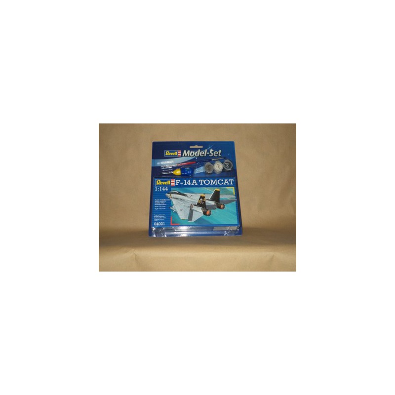 Le Grumman F-14 Tomcat est un avion de chasse embarqué à géométrie variable. Destiné à protéger la flotte d'attaques aériennes, il est le premier chasseur conçu aux États-Unis à intégrer les leçons de la guerre du Viêt Nam. Il est devenu mondialement célèbre en 1986 grâce au film Top Gun avec Tom Cruise. Le Model set Revell propose le modèle au 1/144 accompagné de la colle, du pinceau et de la peinture nécessaires à sa réalisation, réf: 64021