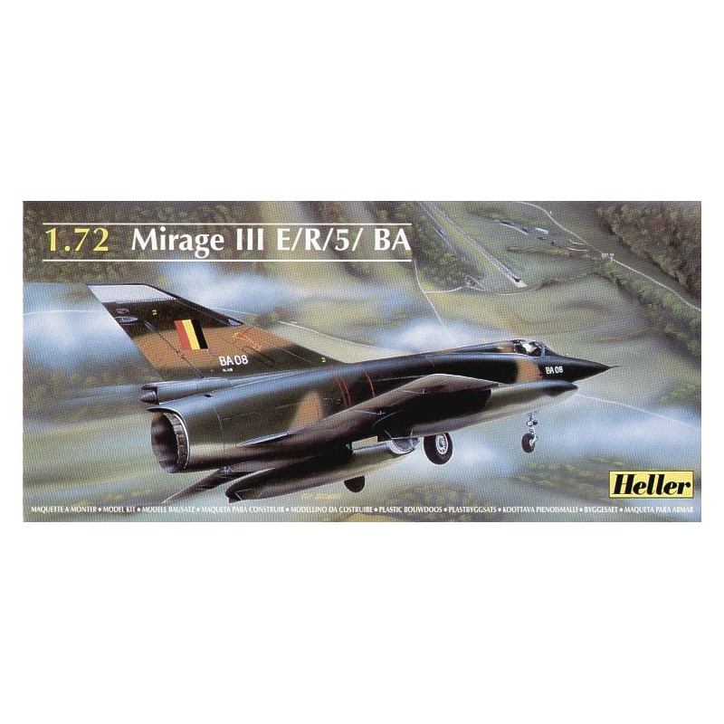 Le prototype du Mirage III E effectue ses essais le 5 avril 1961. C'?est une version d'?attaque au sol et d?'appui tactique. Le Mirage III R est une version de reconnaissance dont la pointe est dotée de cinq camé­ras. Le Mirage 5, spécialement étudié pour l'?exportation, est un Mirage III E très simplifié. La maquette avion Heller au 1/72 se compose de 54 pièces réf: 80323