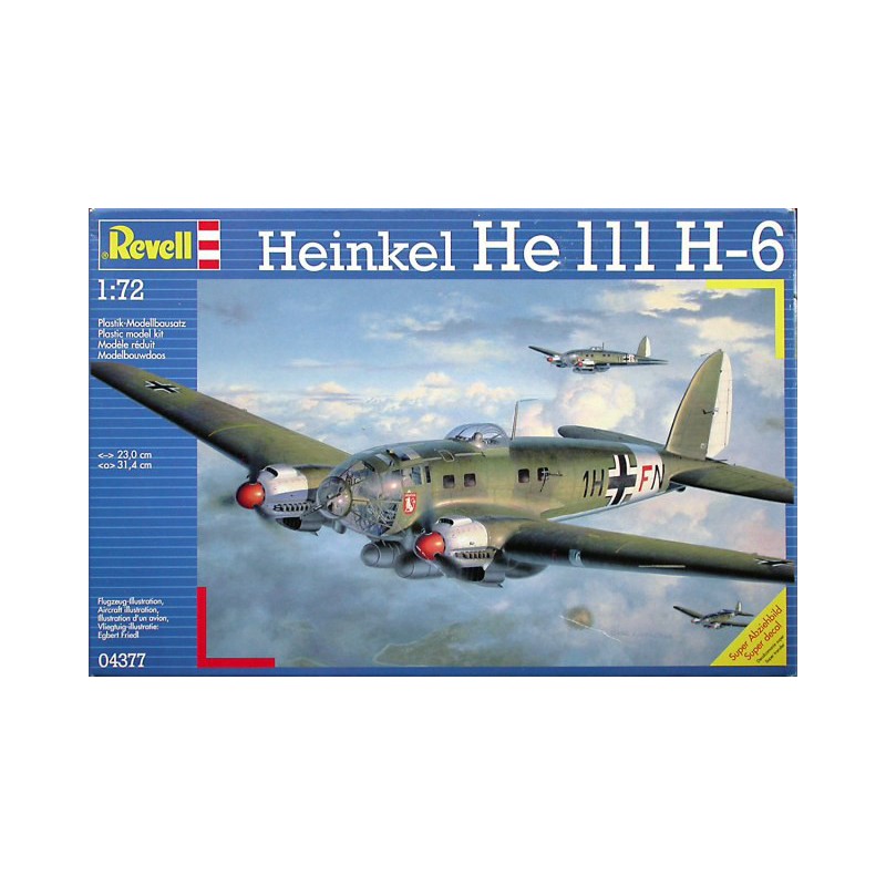 Le Heinkel He 111 est un avion allemand de la Seconde Guerre mondiale bimoteur conçu aussi bien comme bombardier que comme avion de ligne pouvant transporter 10 passagers en plus des quatre hommes d'équipage. La maquette avion Revell au 1/72 propose une version détallée de ce modèle, réf: 04377