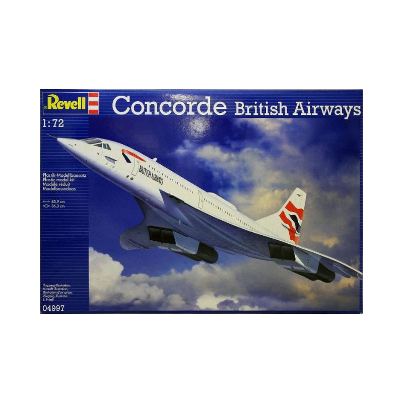 Le Concorde est un avion de ligne supersonique construit par lassociation de Sud-Aviation (devenue par la suite Aérospatiale) et de la BAC (devenue ensuite British Aerospace). Confiné à des liaisons transatlantiques et exploité par deux compagnies seulement, lappareil ne fut produit quà vingt exemplaires, dont six non commerciaux. La maquette avion Revell au 1/72 propose la version aux couleurs "British Airways", réf: 04997