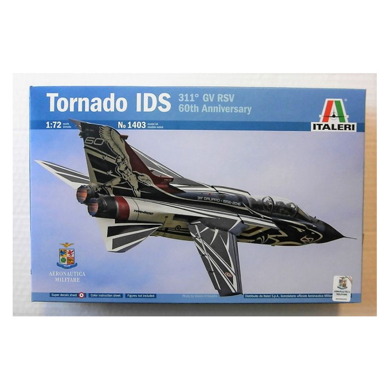 Le Panavia Tornado est un avion de combat multi-rôles développé en commun par l'Italie, le Royaume-Uni, et l'Allemagne durant les années 1970. La maquette avion Italeri 1/72 propose les décalques de le version 60ème anniversaire du RSV, réf: 1403