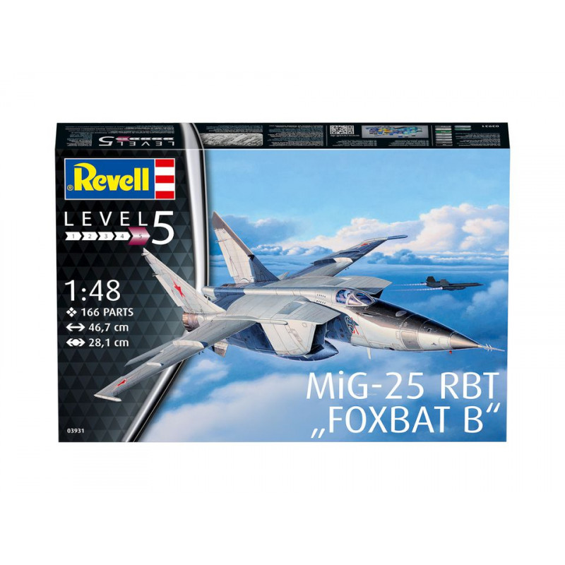Le MIG-25 est un avion d'interception et de reconnaissance soviétique, connu sous le nom de code OTAN « Foxbat ». La maquette avion Revell au 1/48 propose la version RBT de reconnaissance, réf: 03931