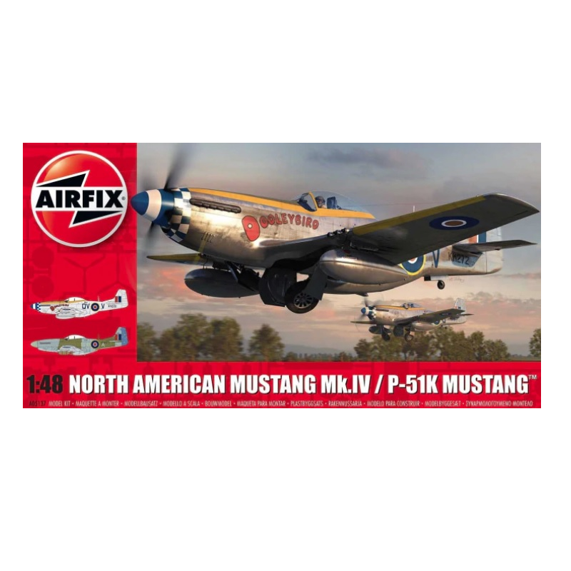 Le P-51 Mustang est un avion de chasse américain conçu par North American Aviation. Utilisé lors de la Seconde Guerre mondiale, il est au départ développé pendant l'année 1940 pour répondre au besoin urgent de chasseurs supplémentaires de la Royal Air Force. La maquette avion Airfix au 1/48 reproduit ce légendaire aéroplane, réf: 05137