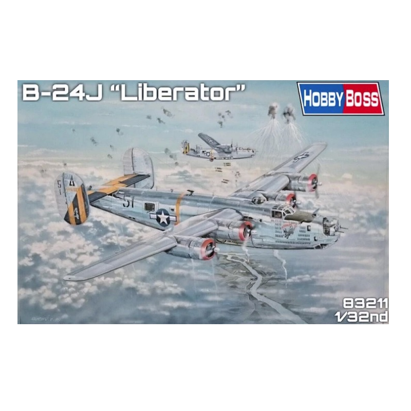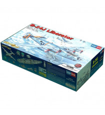 Le Consolidated B-24 "Liberator" est un bombardier lourd américain, conçu par Consolidated Aircraft de San Diego (Californie). Le B-24 fut utilisé pendant la Seconde Guerre mondiale par les forces aériennes et navales alliées, et par plusieurs branches des forces armées américaines. Souvent comparé au Boeing B-17 plus connu, le B-24 est de conception plus moderne, avec une plus grande vitesse de pointe, un plus long rayon d’action, et une plus grande charge de bombes. Toutefois, il est également plus difficile à faire voler, avec des commandes lourdes et des caractéristiques de vol en formation insuffisantes. La maquette avion Hobby Boss au 1/32 propose ce modèle très détaillé. Elle se compose de 540 pièces avec cockpit et soute finement détaillés et pièces en photo-découpe, réf: 83211.