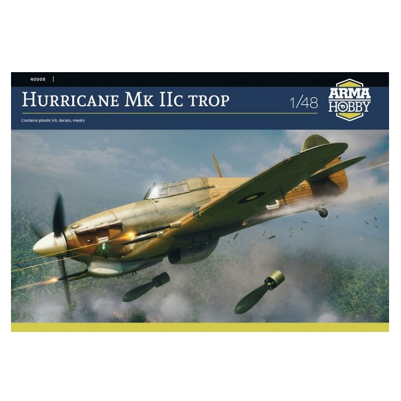 Le Hawker Hurricane fut le premier chasseur monoplan de la Royal Air Force. Il s'illustra en particulier lors de la bataille d'Angleterre, durant la Seconde Guerre mondiale. La maquette avion Arma Hobby propose version Tropical, réf: 40005
