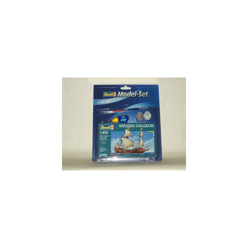 Dans la deuxième moitié du 16ème siècle apparurent en Europe des navires de haute mer, les galions. La caractéristique principale de ces bâtiments fortement armés était leur coque élancée favorisant la vitesse. Le Model Set Revell au 1/450 est facile de réalisation, propose des voiles préformées et une poupe décorée et fournit colle pinceau et peintures, réf: 65899