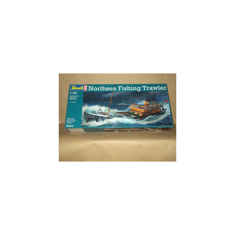 "Un chalutier est un bateau de pêche qui doit son nom au chalut, filet qu'il utilise. La maquette bateau Revell au 1/142 propose une coque détaillée, un pont structuré, des rambardes et conteneur de radeau de sauvetage, des mâts de radar, deux mâts de charge, une embarcation, deux treuils sur le pont, deux figurines de matelots et des décalcomanies authentiques, réf: 05204