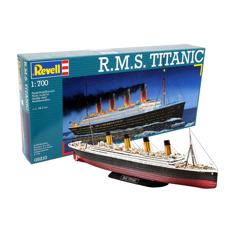 Le RMS3 Titanic est un paquebot transatlantique britannique de la White Star Line construit à l'initiative de Joseph Bruce Ismay en 1907. Lors de son voyage inaugural, de Southampton à New York via Cherbourg et Cobh (Queenstown à l'époque), il fait naufrage en heurtant avec sa coque avant un iceberg à tribord, le 14 avril 1912. La maquette bateau Revell au 1/700 propose une reproduction fidèle de ce navire mythique, réf: 05210