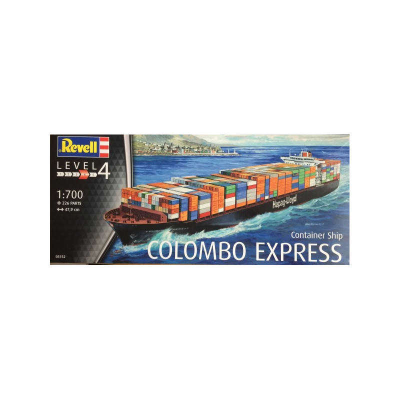 Lors de son baptême en avril 2005, le Columbo Express était le plus gros navire porte-containers jamais mis en service. Ses dimensions sont impressionnantes: 335,47 m de long, 42,4 m de large et 60,5 m de haut, pour une capacité de chargement de 103.800 t. Il peut embarquer 8.749 containers de 20 pieds. La maquette Revell au 1/700 permet de réaliser ce modèle chargé ou non, réf: 05152