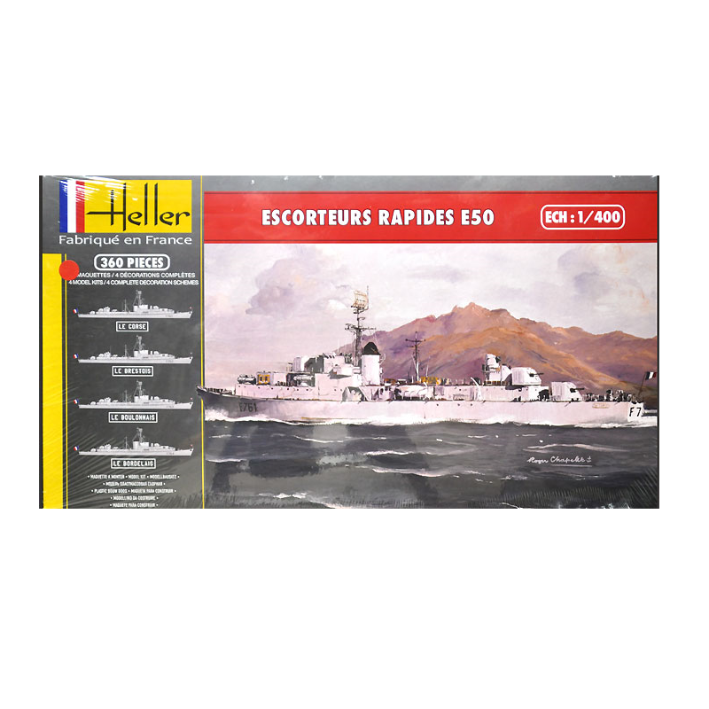 Le terme d'escorteur est apparu pendant la Seconde Guerre mondiale pour désigner un navire de guerre, d'un déplacement moyen ou léger, qui avait pour mission de protéger les convois océaniques et les escadres des attaques des sous-marins. La classe Le Corse (dite type E50) est un type de bâtiment de lutte ASM construit pour la Marine nationale française entre 1952 et 1955 et dénommée escorteur rapide. La maquette bateau Heller au 1/400 propose une reproduction de ce modèle, réf: 81093