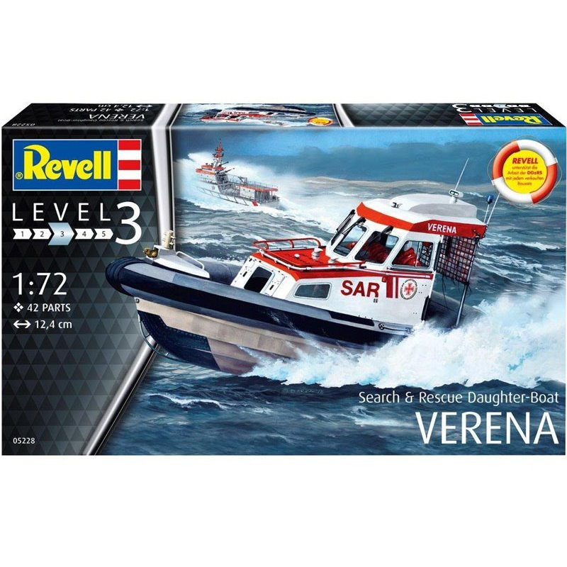 Le VERENA est la vedette d'accompagnement du croiseur de sauvetage HERMANN MARWEDE, la plus grosse unité de la DGzRS (Société Allemande de Sauvetage en Mer). Ce canot gonflable à cabine fermée est équipé de deux propulseur à jet. La maquette bateau Revell au 1/72 propose une reproduction de ce modèle, réf: 05228