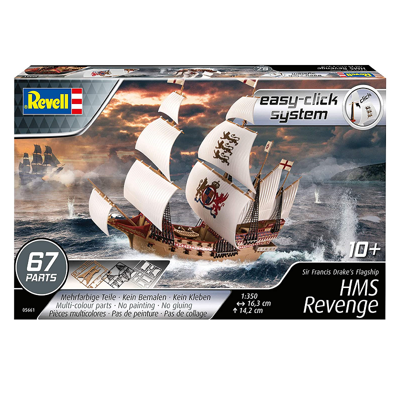 Le HMS Revenge est un navire anglais qui a joué un rôle décisif dans la défaite de l'Armada espagnole en 1588, sous le commandement du légendaire capitaine Sir Francis Drake. La maquette bateau Revell au 1/350 est un modèle Easy-Click, sans colle ni peinture composé de 167 pièces, réf: 05661