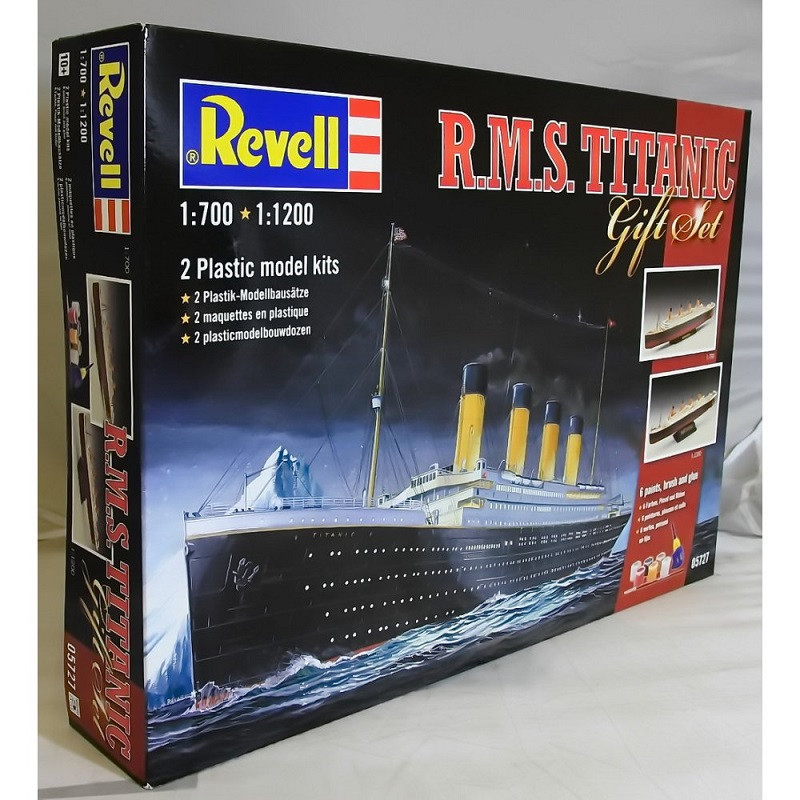 Ce coffret cadeau Revell contient deux maquettes du célèbre R.M.S. Titanic, une au 1/700 et la seconde au 1/1200. La colle, la peinture et les pinceaux sont fournis de même que les socles de présentation. Idéal pour que papa initie son fils sans s'ennuyer, réf: 05727