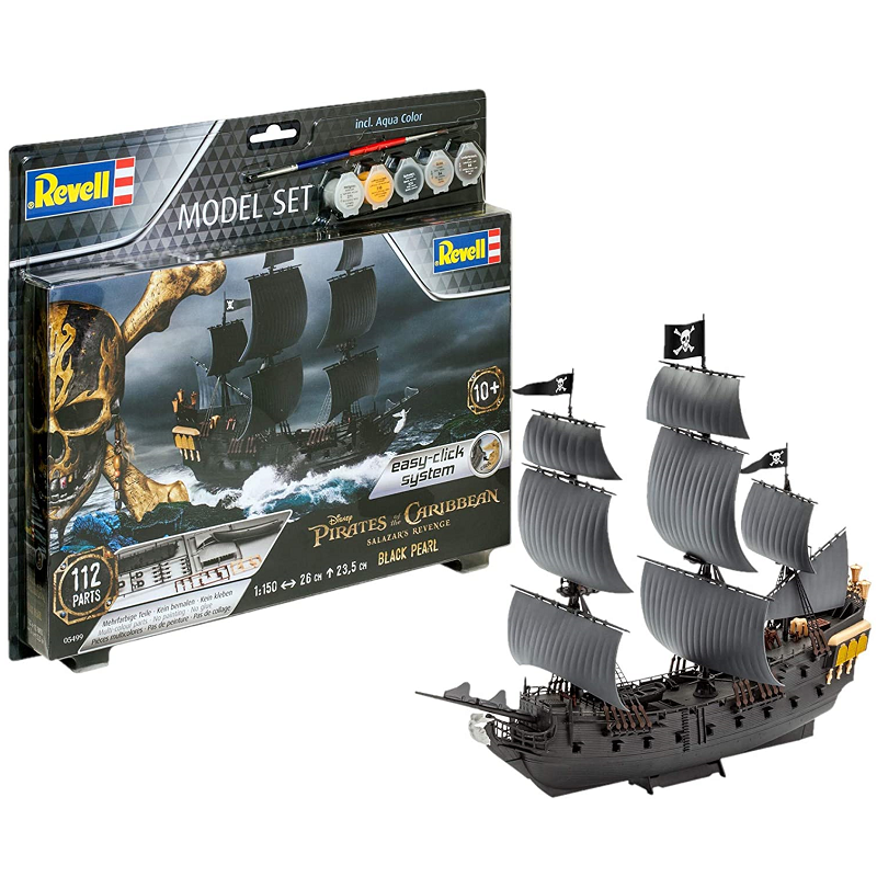 Le Black Pearl est un galion et le navire le plus rapide des Caraïbes. Il s'agit du navire emblématique de la saga "Pirates des Caraïbes". La maquette bateau Revell au 1/150 propose une reproduction fidèle de ce navire, c'est un easy-click system en format Model Set offrant peintures, colle et pinceau, réf: 65499