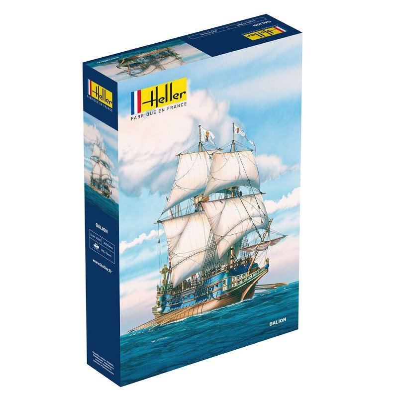 La reconstitution du „Galion Espagnol“, présenté par Heller a pu être établie grâce à certains documents d‘époque. Les galions étaient de grands bâtiments de charge utilisés par les Espagnols, principalement pour le transport de l‘or et des biens divers qu‘ils ramenaient d‘Amérique du Sud et du Mexique sous le règne de Charles Quint. La maquette bateau Heller au 1/200 est composée de 203 pièces, réf: 80835