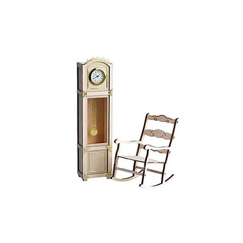 Cette maquette bois Artesania reproduit une horloge et un rocking-chair. Ce kit contient des morceaux de panneaux de contreplaqué découpés au laser, avec certificat FSC, respectant ainsi l'environnement et des instructions pas à pas pour faciliter l'assemblage du modèle, réf: 30201. Une montre peut être insérée (disponible sur ce site réf 30201M).