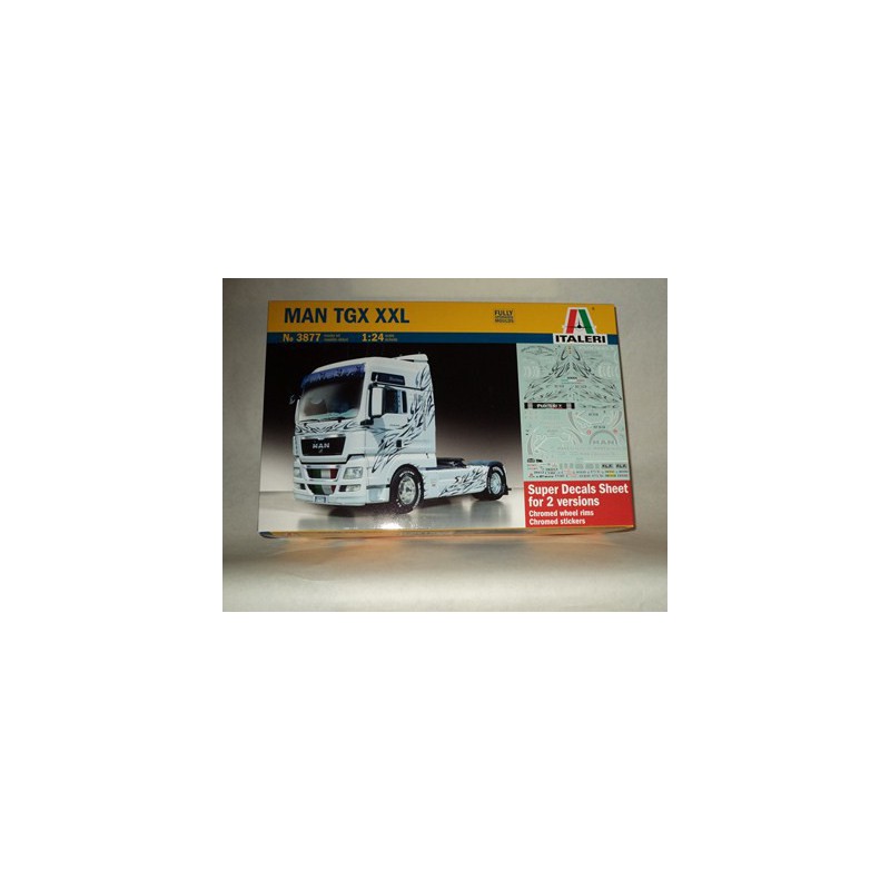 Nouvelle génération du tracteur Man, le TGX propose une aérodynamique alliant rafinement et économie de carburant. La maquette camion Italeri au 1/24 permet de réaliser le modèle avec deux décorations au choix et contient des jantes et des stickers chromés, réf: 3877