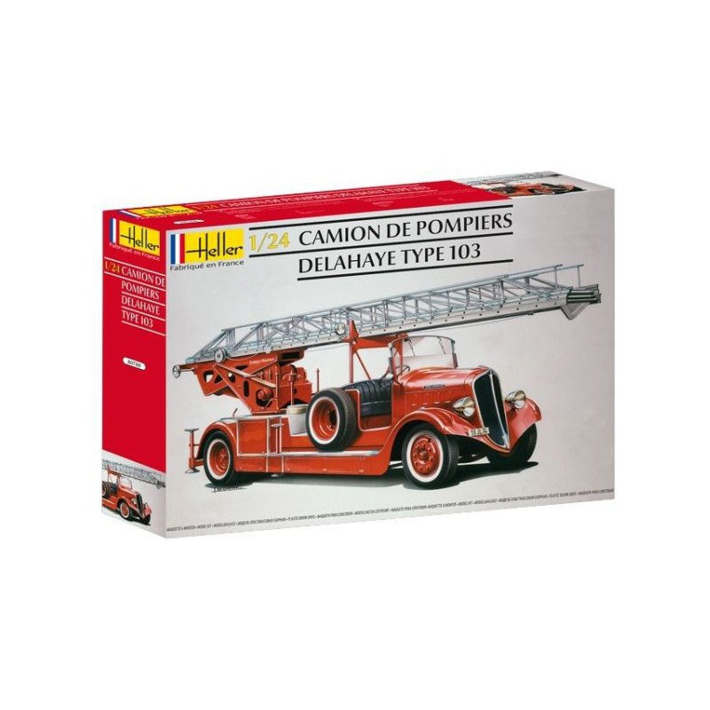 Cette "Grande Echelle" est en fait un DELAHAYE Type 103 de modèle 1937 équipé d'une échelle MAGIRUS de 26 mètres entièrement métallique. Commandé spécialement par la Principauté monégasque, cet exemplaire unique fut livré en 1939 au corps des Sapeurs Pompiers de Monaco où elle resta en service pendant près de 30 ans. La maquette camion de pompiers Heller au 1/24 se compose de 210 pièces, réf: 80780