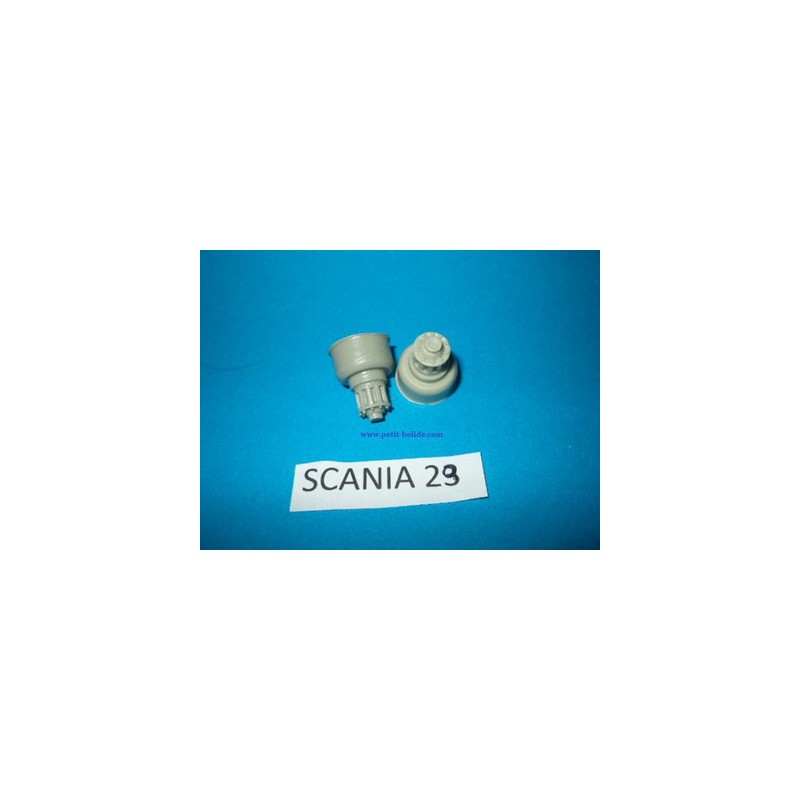 Moyeux arrières pour essieu moteur en résine à adapter sur vos maquettes Scania série 2 et 3 au 1/24. Vendus par paire
