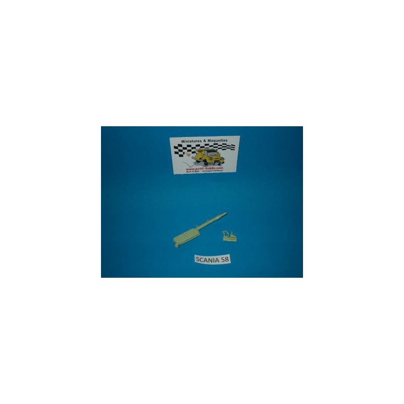 Kit en résine permettant de corriger la maquette Italeri comprenant un pot d'échappement, un levier de vitesse et un porte-bouteille pour le tableau de bord d'un Scania série R au 1/24