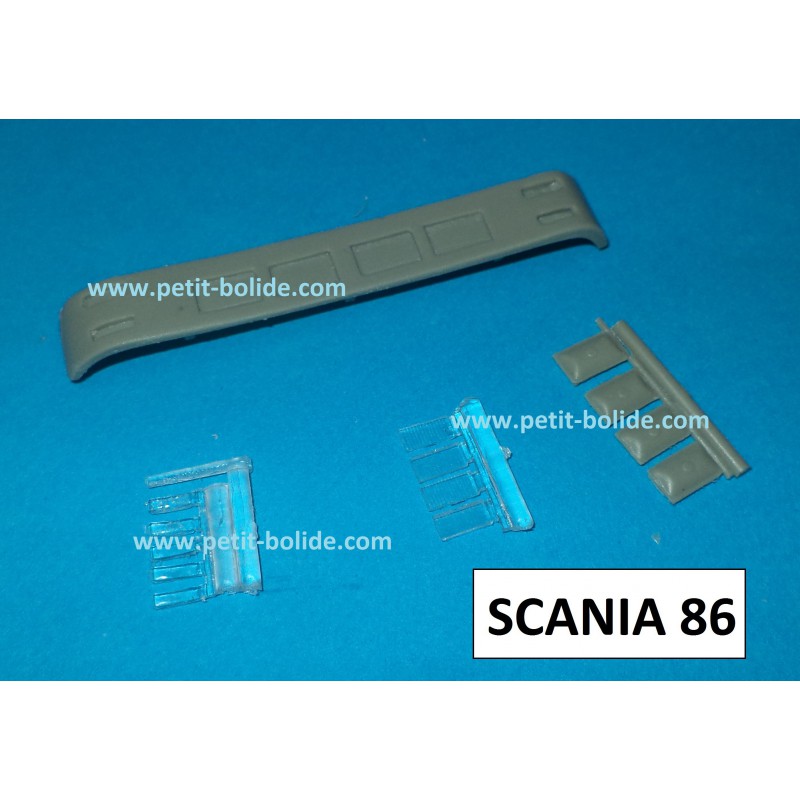Visière en résine comportant 4 phares et 4 veilleuses en résine transparente pour agrémenter vos maquettes camion Scania série 4 ou R au 1/24
