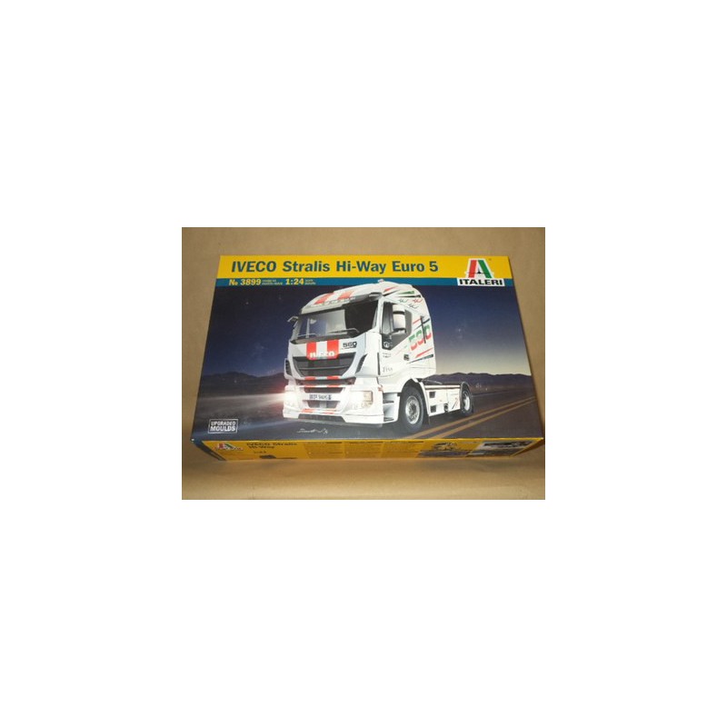 Le Stralis Hi-Way est la dernière évolution du célèbre tracteur routier Iveco. Le design de la cabine a été complètement revu et elle est équipée de systèmes électroniques intégrés en mesure d'optimiser le confort et la sécurité à bord. La maquette camion Italeri au 1/24 propose des décalques pour 2 décorations, réf: 3899