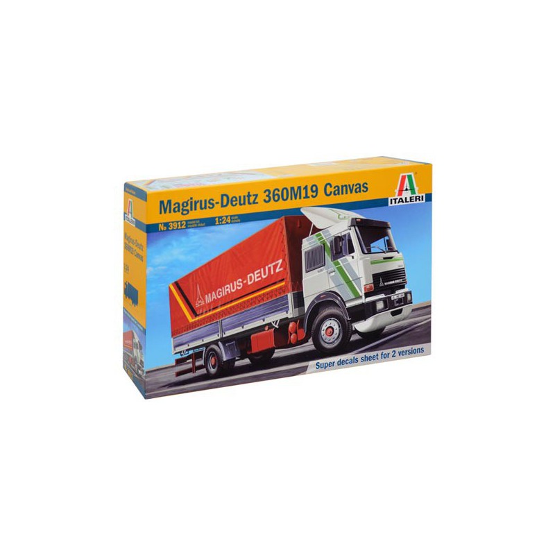 Le "360M19" fut produit par la société Allemande Magirus - Deutz alors qu'elle faisait déjà partie intégrante du Groupe Iveco. Le développement du camion synthétise tous les aspects qui ont rendu célèbre, dans les années 70 et au début des années 80, le fabricant / installateur d'Ulm. La maquette camion Italeri au 1/24 permet de réaliser le modèle en version porteur ou tracteur, réf: 3912