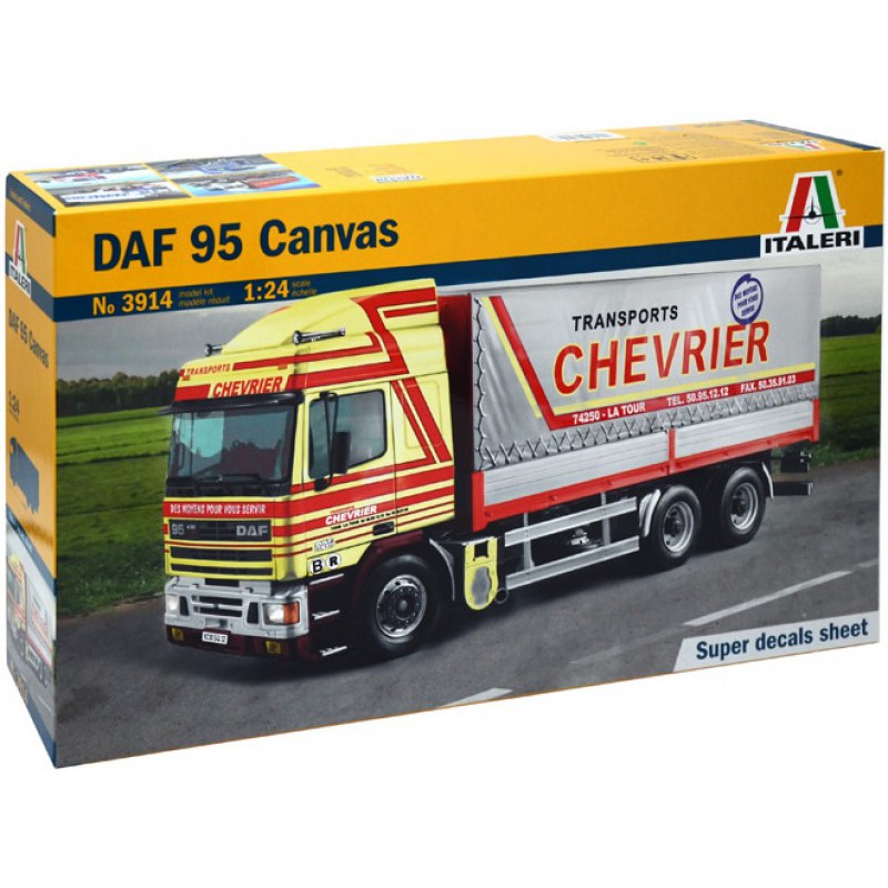 La société DAF néerlandaise est aujourd'hui reconnue comme l'un des leaders sur le marché industriel mondial. Tout au long de son histoire, la série 95 a été, sans aucun doute une référence, pour DAF. La série a été lancée sur le marché dans la seconde moitié des années 1980. La maquette camion Italeri au 1/24 propose une version aux couleurs d'un transporteur français : Chevrier, réf: 3914