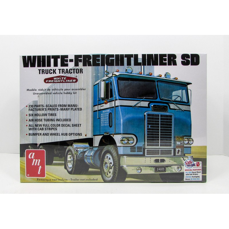 Freightliner LLC, partie du groupe allemand Daimler AG, est le plus important constructeur de véhicules poids lourds des États-unis dAmérique. La maquette camion AMT au 1/25 propose une version cabine courte, nez plat simple essieu moteur, réf : 1004