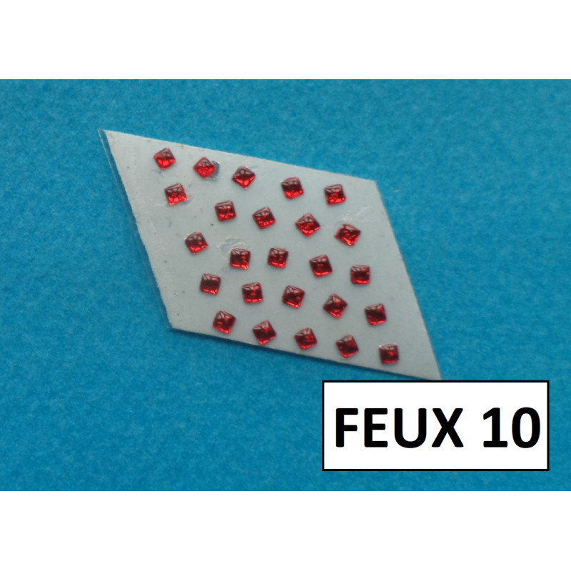 Feux carrés translucides rouges avec fond chromé 1.5x1.5 mm vendus par 25
