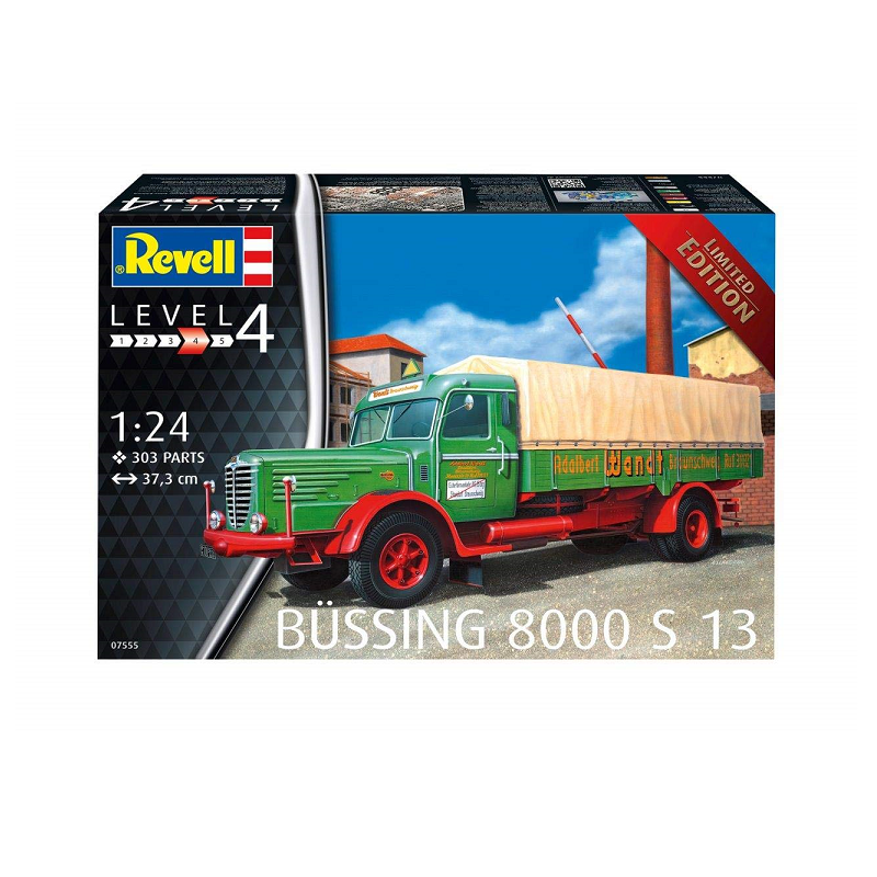 Ce porteur est un camion allemand de la marque "Büssing" qui a été rachetée par Man au début des années 70. La maquette Revell au 1/24 s'adresse à des modélistes confirmés. Il s'agit d'une édition spéciale, réf 07555