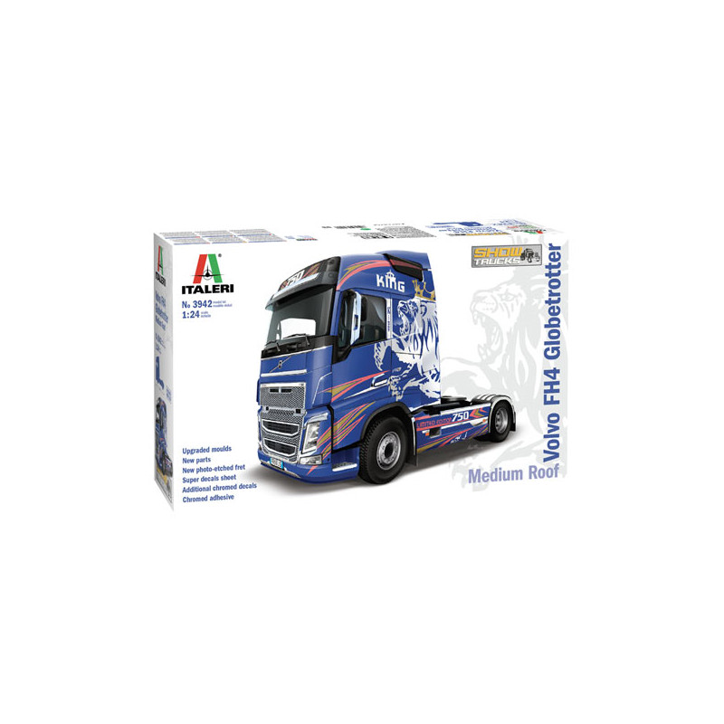 Ce Volvo FH4 est la quatrième génération du fleuron de la marque. Il s'agit de la dernière version commercialisée par la marque suédoise. La maquette camion Italeri au 1/24 est d'une fidélité remarquable grâce aux nouveaux procédés de fabrication. Elle propose une planche de photo-découpe pour la calandre et permet de réaliser le modèle à toiture intermédiaire, réf : 3942