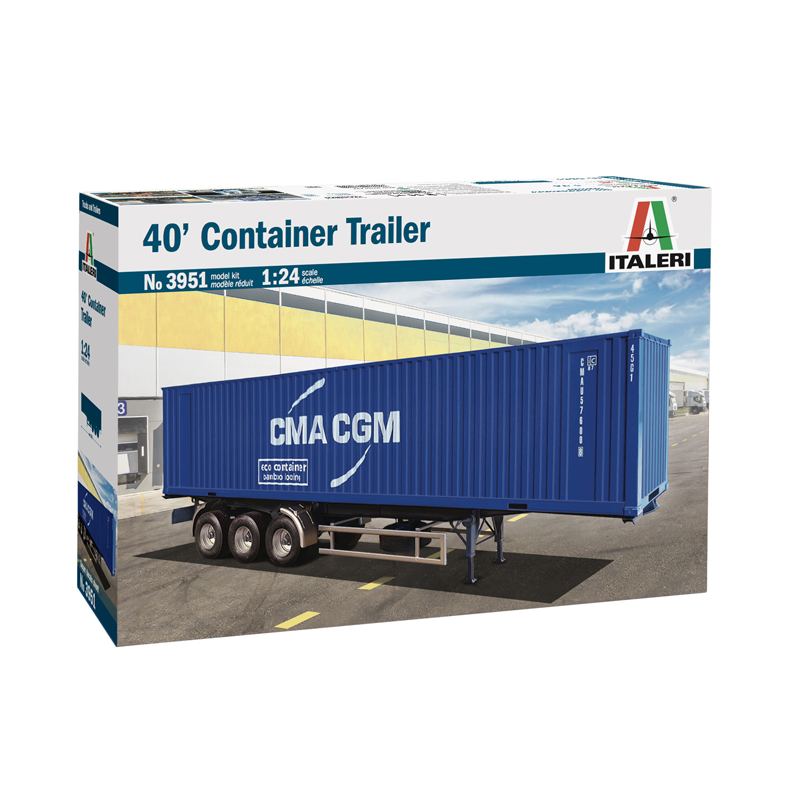 Cette semi-remorque est conçue pour accueillir un container 40 pieds. La maquette camion Italeri au 1/24 se compose de la semi-remorque container, réf: 3951