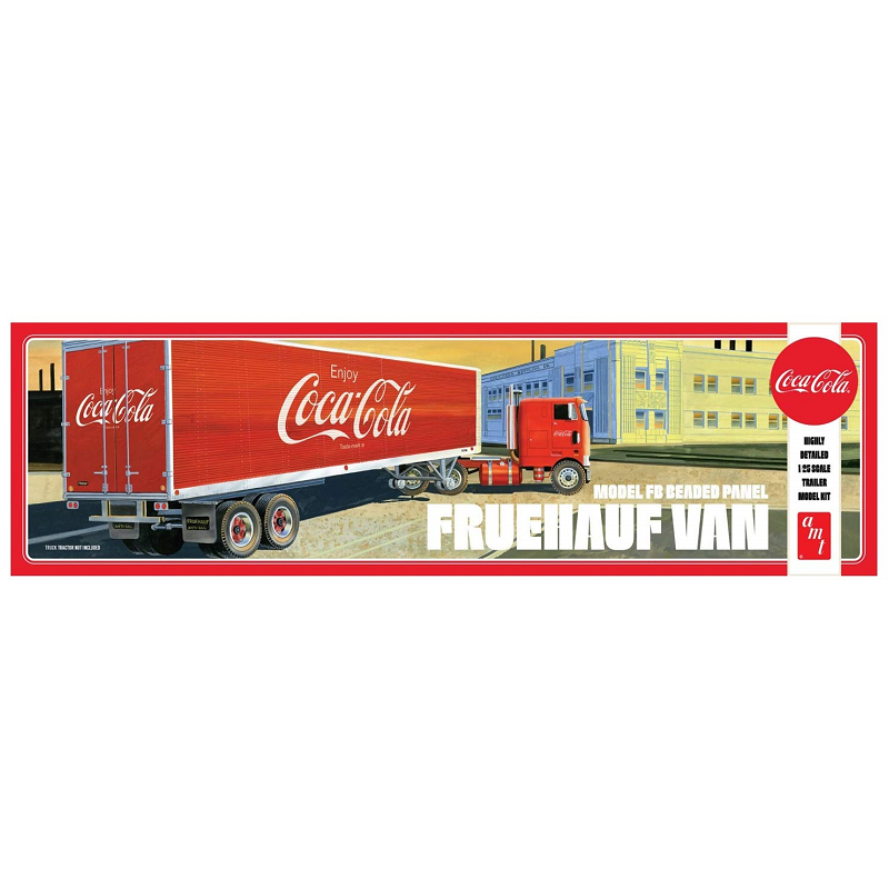 Cette maquette camion AMT au 1/25 reproduit une remorque traditionnelle pour le transport de marchandise aux couleurs "Coca-Cola", réf : 1109