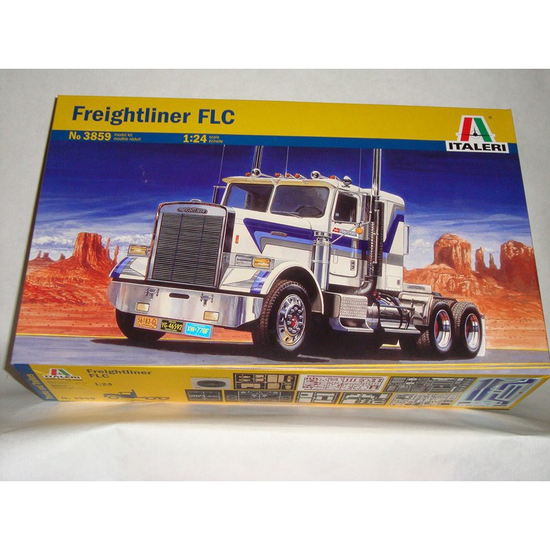 Ce FLC est un camion typiquement américain de la fin des années 80 produit par Freightliner sous licence Daimler. A sa sortie, il était particulièrement apprécié par les patrons chauffeurs pour son look et sa fiabilité. La maquette camion Italeri au 1/24 contient divers éléments chromés, réf: 3859