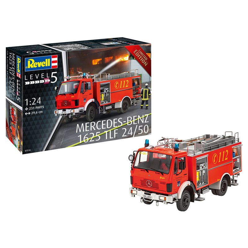 Le fourgon pompe-tonne (= FPT) sur la base du Mercedes-Benz 1625 (16 t, 250 CV) et équipé d'une citerne de 5 000 litres, était initialement conçu pour lutter contre les incendies sur autoroutes. Tout au long de sa longue période d'utilisation par de nombreux pompiers, il a toutefois fait ses preuves avec brio lors de nombreuses autres interventions dans le cadre d'incendies. La maquette camion Revell au 1/24 propose une reproduction de ce modèle, réf: 07516