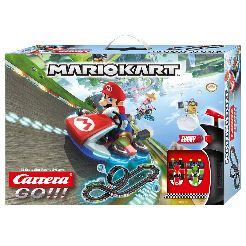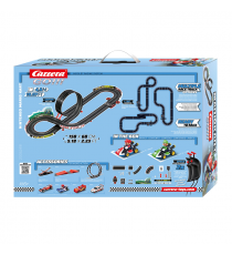 Ce circuit Carrera GO propose deux voitures Mario Kart 8 : Mario et Luigi. Il s'agit d'un circuit analogique de 4.9 mètres de développé et d'un encombrement de 68 x 158cm. Le coffret contient le circuit avec un looping, les deux voitures à l'échelle 1/43, deux poignées et un compte-tours. Le circuit peut évoluer grâce aux kits d'extension. A partir de 6 ans, réf : 20062491