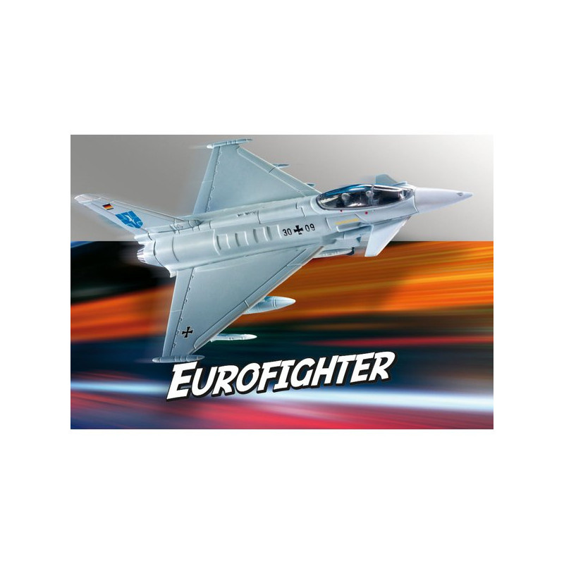 LEurofighter Typhoon est un avion de combat bi-réacteur, ailes delta et plan canard, multi-rôles développé par le Royaume-Uni, l'Allemagne, l'Italie et l'Espagne regroupés dans le consortium Eurofighter GmbH. La maquette Revell au 1/100 est un easykit qui reproduit un modèle allemand, il ne nécessite ni collage, ni peinture, les pièces s'emboitent, à partir de 6 ans, réf: 06452