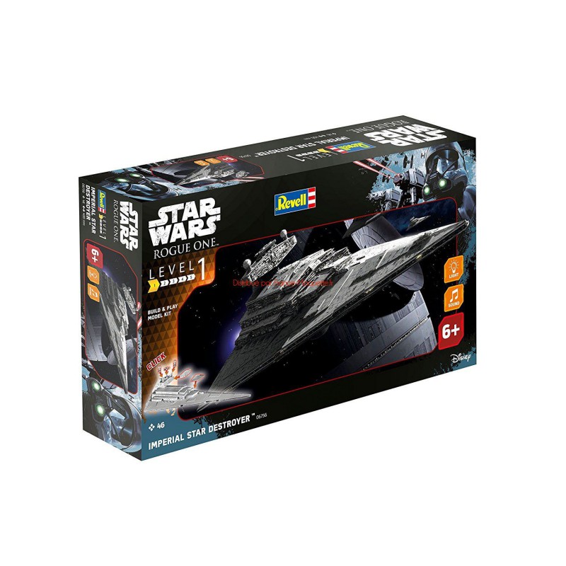 Le Destroyer Stellaire classe - 1 (croiseur interstellaire dans les films) est le vaisseau de base de lEmpire galactique dans les films de Star Wars. La maquette Star Wars Revell au 1/4000 est un modèle Build & Play à encliqueter avec son et lumière, réf 06756