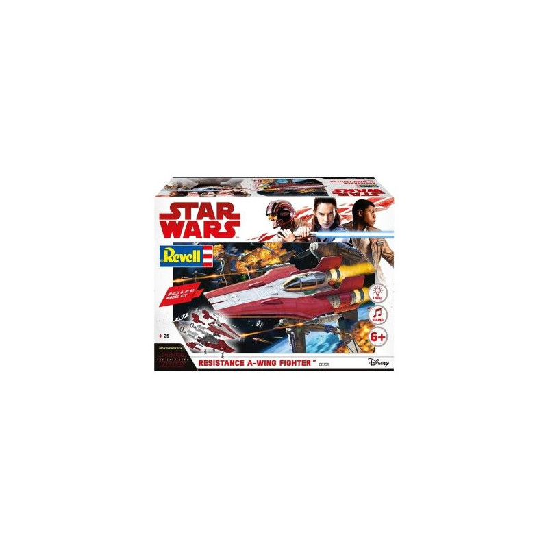 La maquette Star Wars Revell reproduit un Resistance A-Wing Fighter rouge. Il s'agit d'un modèle Build & Play à encliqueter avec son et lumière, réf 06759
