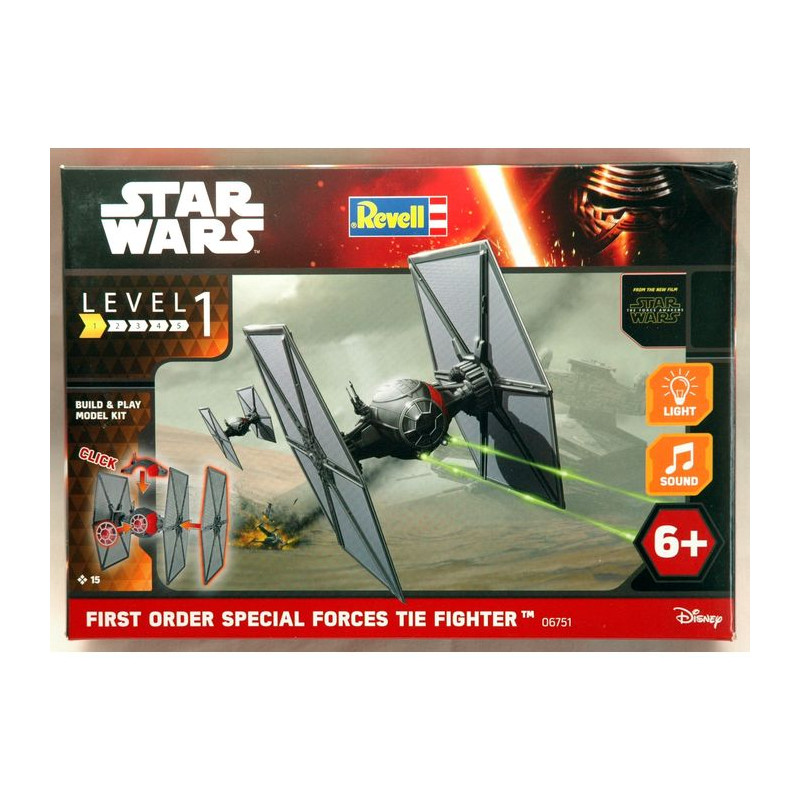Ce Tie Fighter est le vaisseau réservé aux membres de la First Order dans l'univers de Star Wars. La maquette Star Wars Revell est un modèle Build & Play à encliqueter avec son et lumière, réf 06751