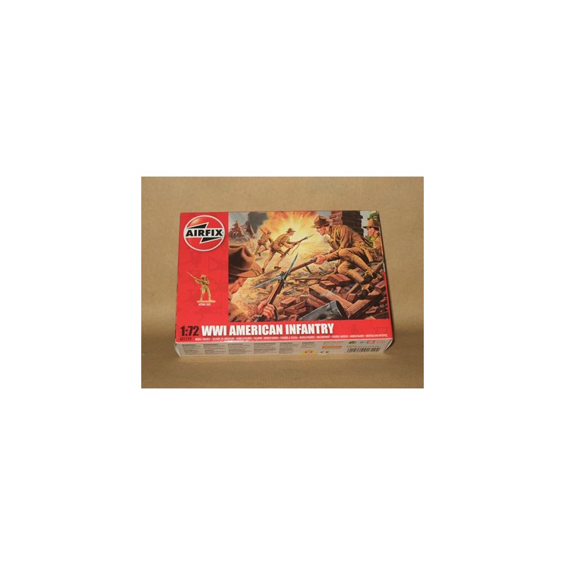 Cette boite Airfix au 1/72 contient 48 figurines à peindre représentant l'Infanterie Américaine lors de la Première Guerre Mondiale. Des poses dynamiques associées à une fine restitution des uniformes et des équipements apportent un grand réalisme, réf: 01729
