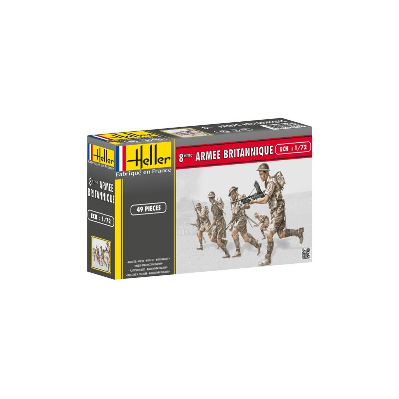 Cette boite Heller au 1/72 contient 49 figurines à peindre représentant l'infanterie britannique qui lutta courageusement dans le désert d'Afriqu. Des poses dynamiques associées à une fine restitution des uniformes et des équipements apportent un grand réalisme, réf: 49609