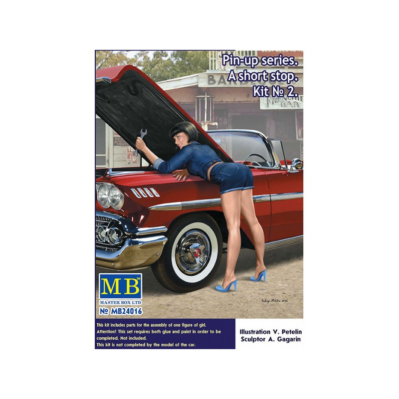 Cette maquette MB propose une figurine de pin-up "A short stop" kit n°2 au 1/24, réf : 24016