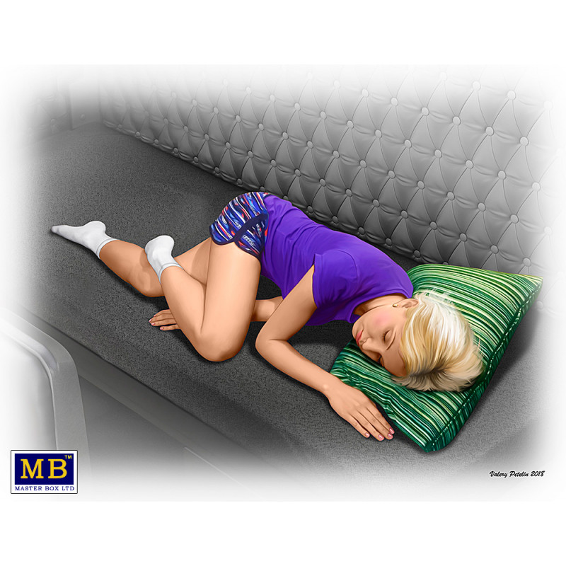 Cette maquette MB propose une figurine de passagère endormie "Kitty James" au 1/24, réf : 24046
