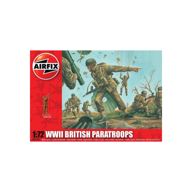Cette boite Airfix au 1/72 contient 41 figurines à peindre représentant des parachutistes britanniques lors de la Seconde Guerre Mondiale. Des poses dynamiques associées à une fine restitution des uniformes et des équipements apportent un grand réalisme, réf: 01723
