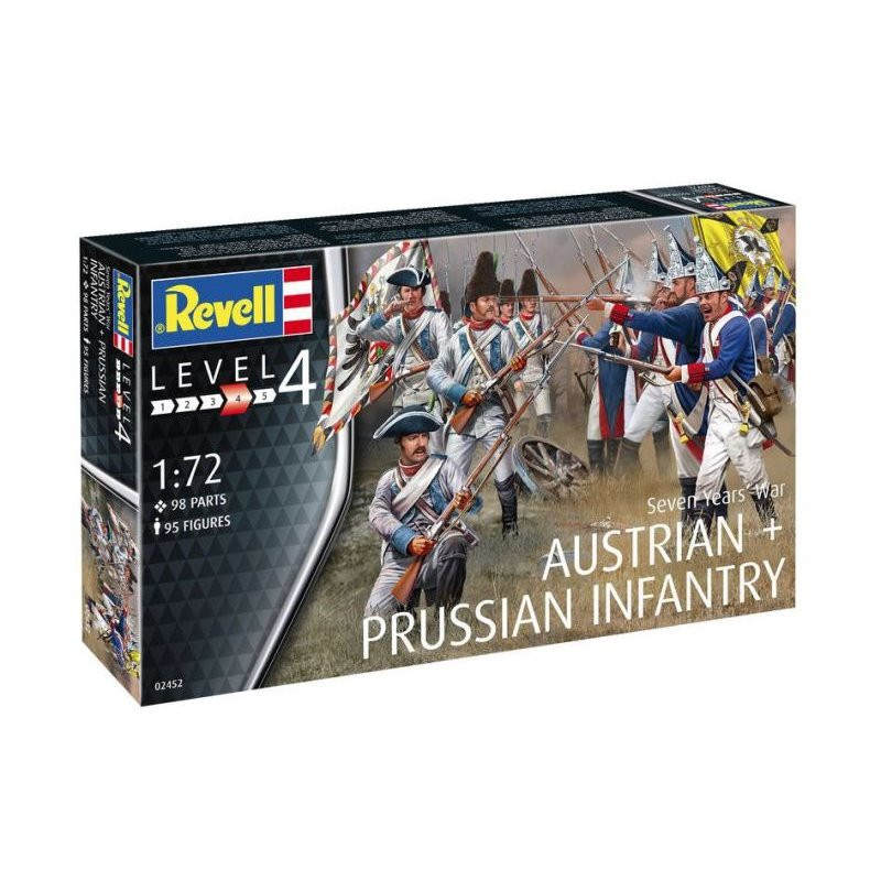 Cette boite Revell au 1/72 contient des figurines de fantassins autrichiens et prussiens de la Guerre de 7 ans au 18ème siècle (95 figurines), réf: 02452