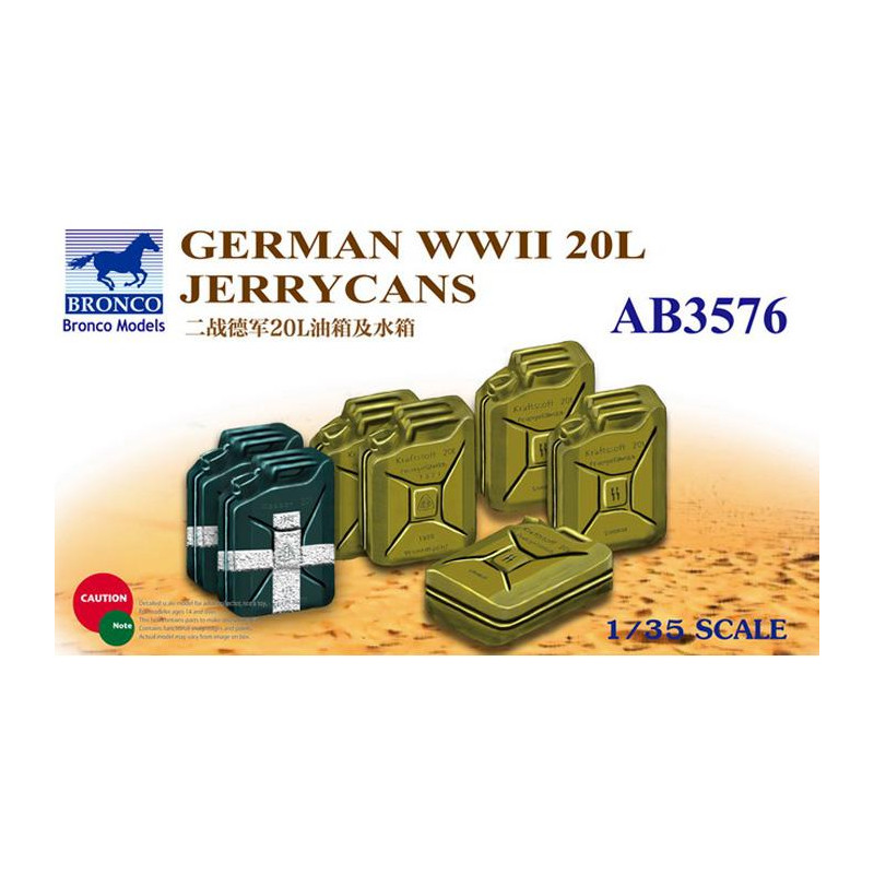 Cette boite Bronco au 1/35 contient des jerricans de 20 litres utilisés au cours de la Seconde Guerre mondiale. Idéale pour agrémenter vos dioramas, réf: ab3576